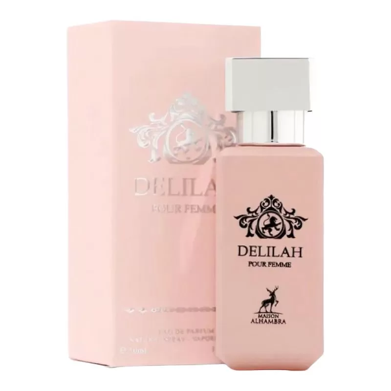 Delilah de Maison Alhambra é um perfume Floral Frutado Feminino. Delilah foi lançada em 2023. As notas de topo são: Ruibarbo, Lichia e Bergamota. As notas de coração são: Rosa Turca, Peônia e Lírio. As notas de fundo são: Almíscar Branco, Cashmeran e Baunilha.