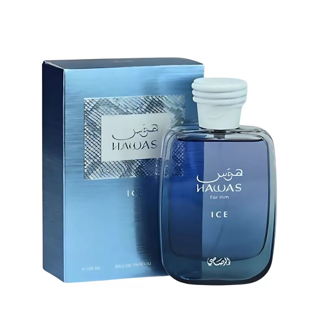 Hawas Ice de Rasasi é um perfume Aromático Masculino. Esta é uma nova fragrância. Hawas Ice foi lançada em 2023. As notas de topo são: Maçã, Limão Italiano, Bergamota Siciliana e Anis Estrelado. As notas de coração são: Ameixa, Flor de Laranjeira e Cardamomo. As notas de fundo são: Almíscar, Âmbar, Madeira Flutuante e Musgo.
